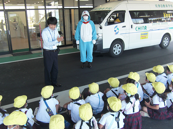 幼稚園児や保育園児に校内施設を使用した「横断歩道の渡り方」体験、教習車を利用した「車の死角」体験などをしていただき、幼児が自分自身で危険から身を守ることができるようにする安全教室を実施しています。
