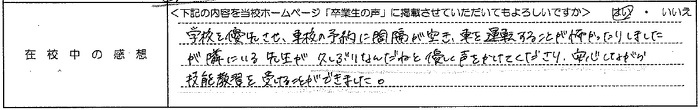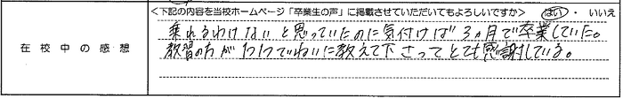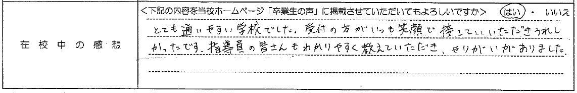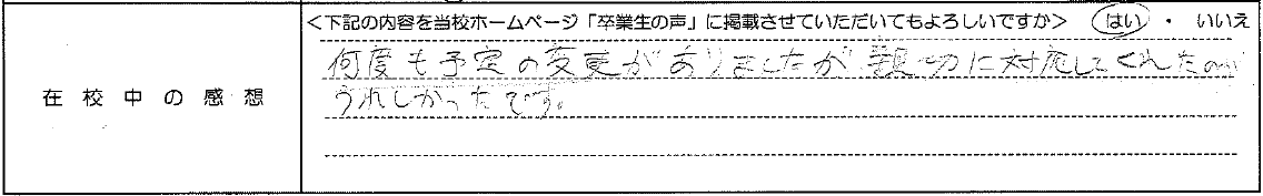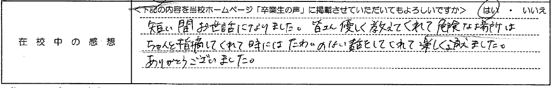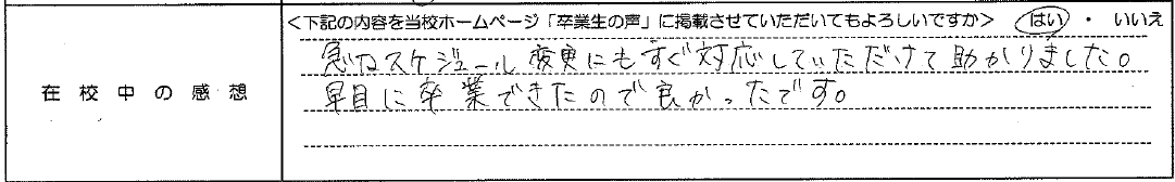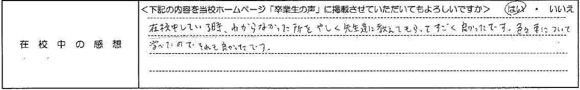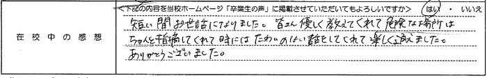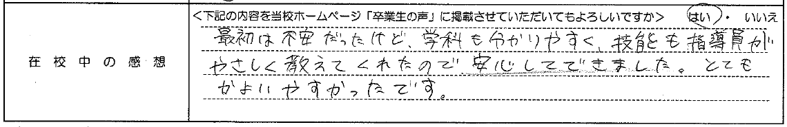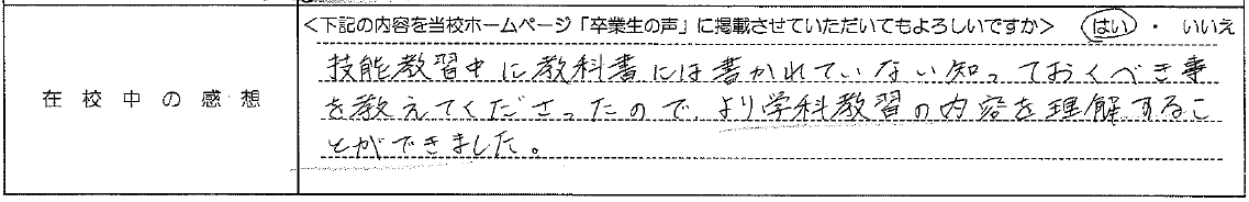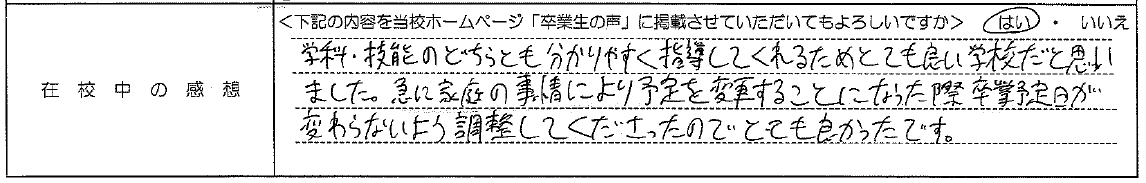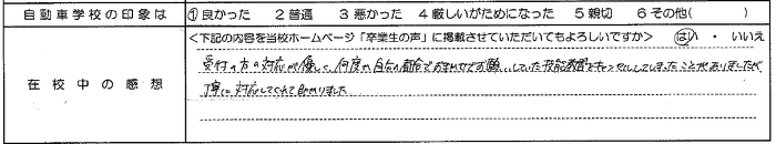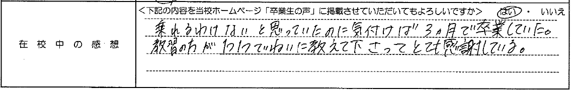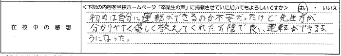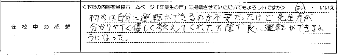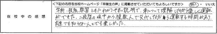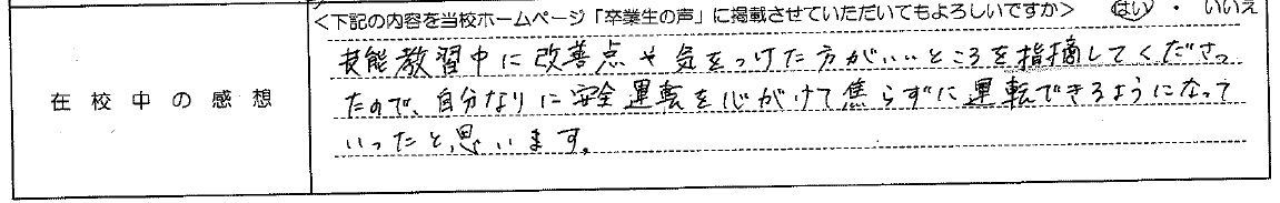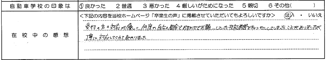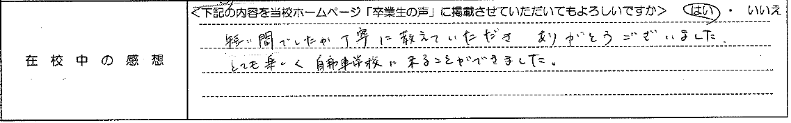 普通自動車AT R7.12.23卒業 20代 女性