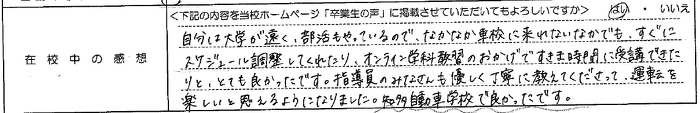 普通自動車AT R7.12.2卒業 20代 男性