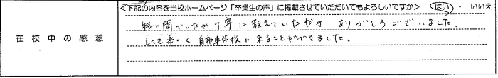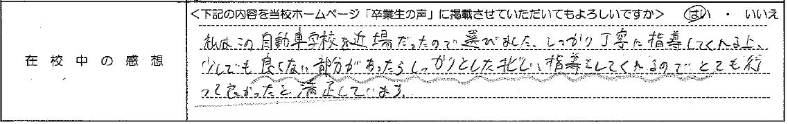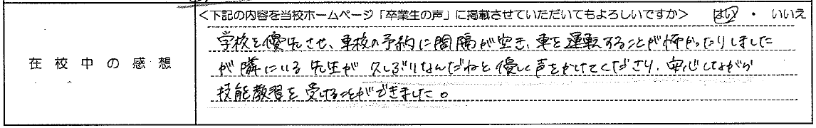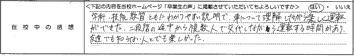 普通自動車AT R8.1.29卒業 20代 男性